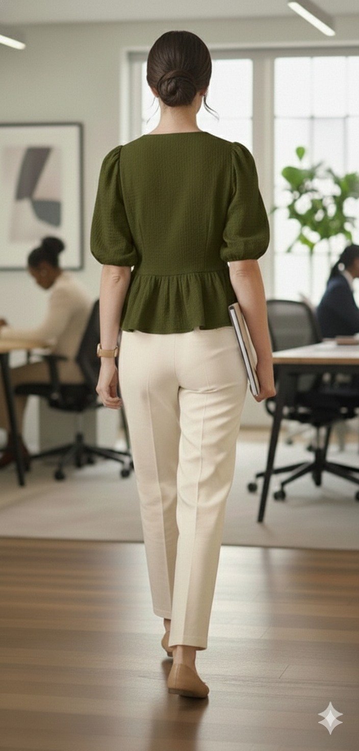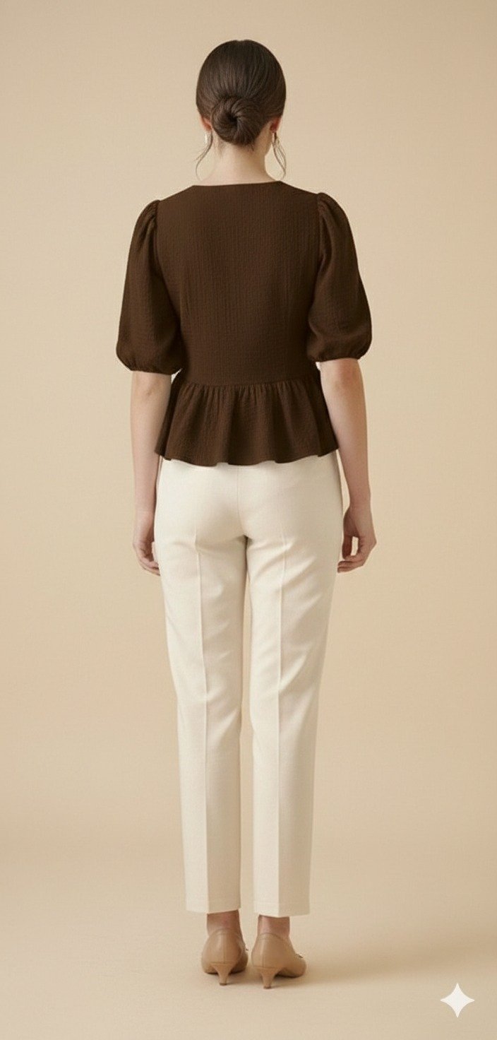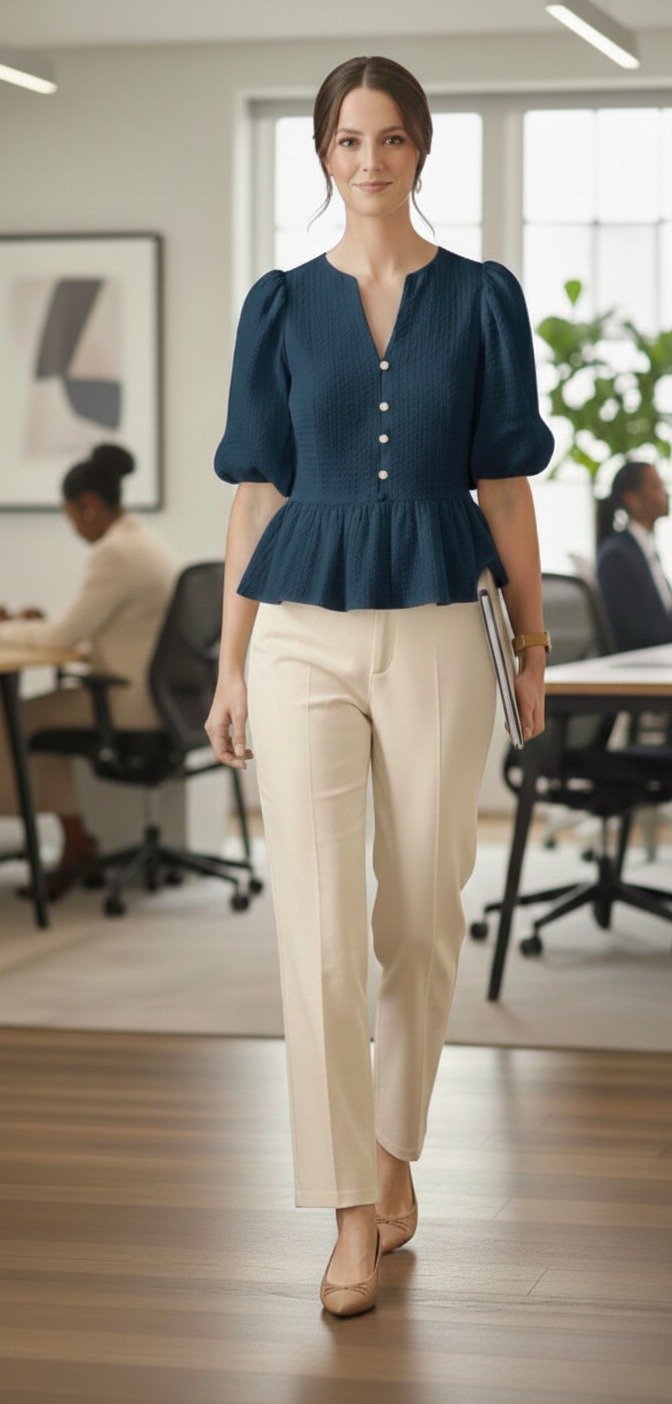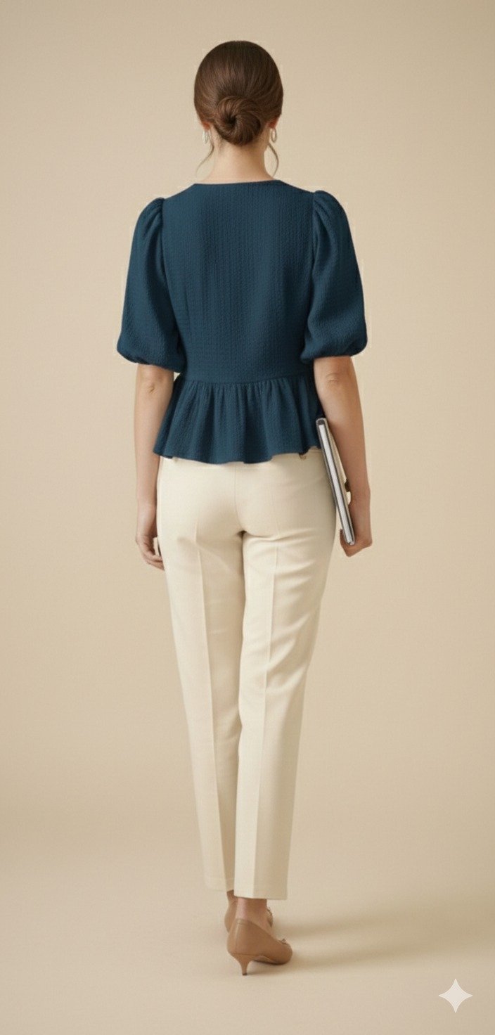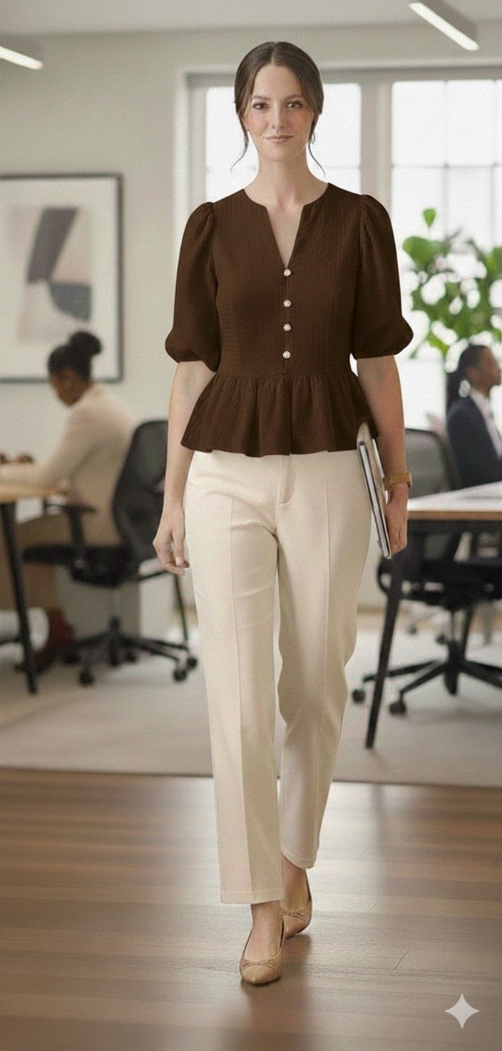 Upgrade your everyday wardrobe with this Puff Sleeve Peplum Workwear Top, designed for comfort, elegance, and a polished appearance.